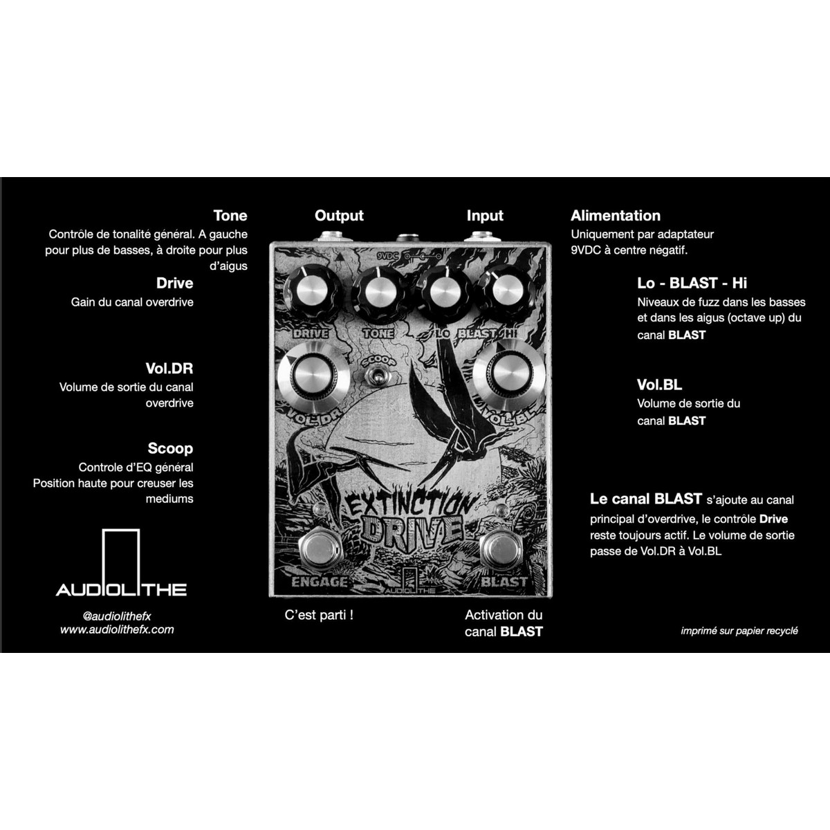 Extinction Drive est une saturation à deux canaux faisant remonter du fond des âges des sonorités primales d’une puissance aussi destructrice que lors de l’extinction des dinosaures.
